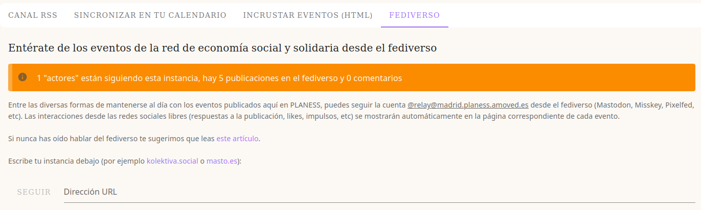 La última pestaña de la sección COMPARTIR es Fediverso y la explicación se ve así: