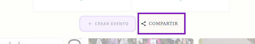 En la página de inicio vamos a la sección de COMPARTIR pulsando el botón al lado de CREAR EVENTO: