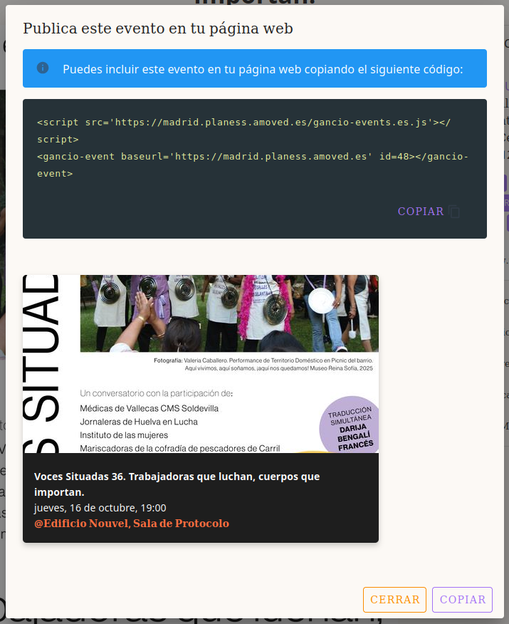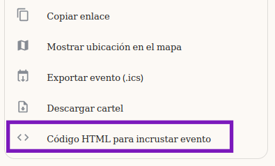 Cuando estamos en la página detalle de un evento podemos ver en el panel informativo de la derecha varios enlaces.