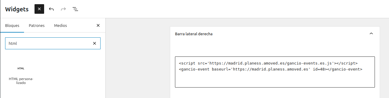 Si nuestra página está hecha en Wordpress por ejemplo podremos añadir este código a un widget o en el propio HTML de nuestra página.
